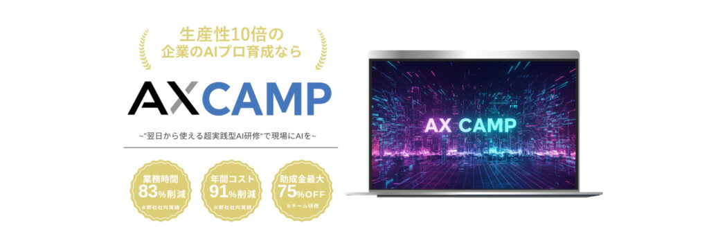 株式会社AXの会社概要、AX CAMPをはじめとする提供サービスについてまとめた資料です。