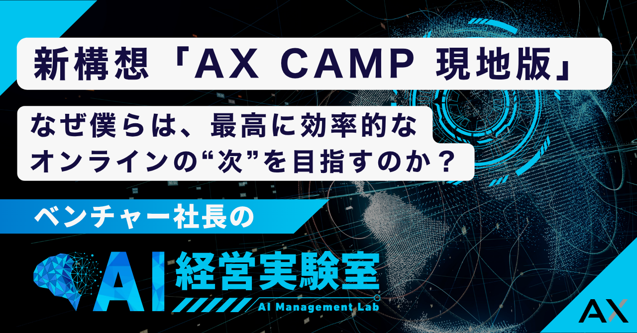 2025.10.16 AI経営実験室 【AI経営実験室】新構想「AX CAMP 現地版」 「AIで26名分の仕事を1人で動かすまでに至った代表・石綿文太が、AI経営のリアルを発信するnoteマガジン『ベンチャー社長のAI経営実験室』。 今回は、「新構想AX CAMP 現地版」をテーマに書いています。 記事はこちらから お知らせ一覧へ
