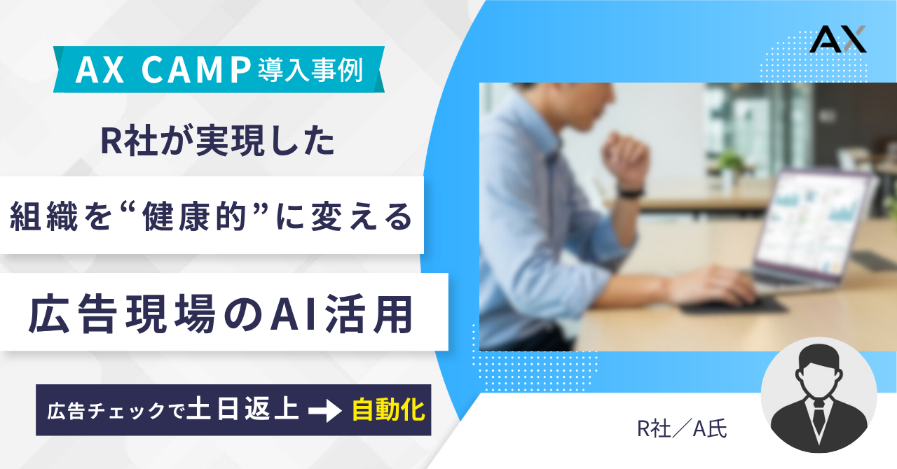 広告代理店・人材紹介のR社が「AX CAMP」を受講し、土日の広告チェックをAIで完全自動化。担当者の負担がゼロになり、チームに“精神的な余白”が生まれました。