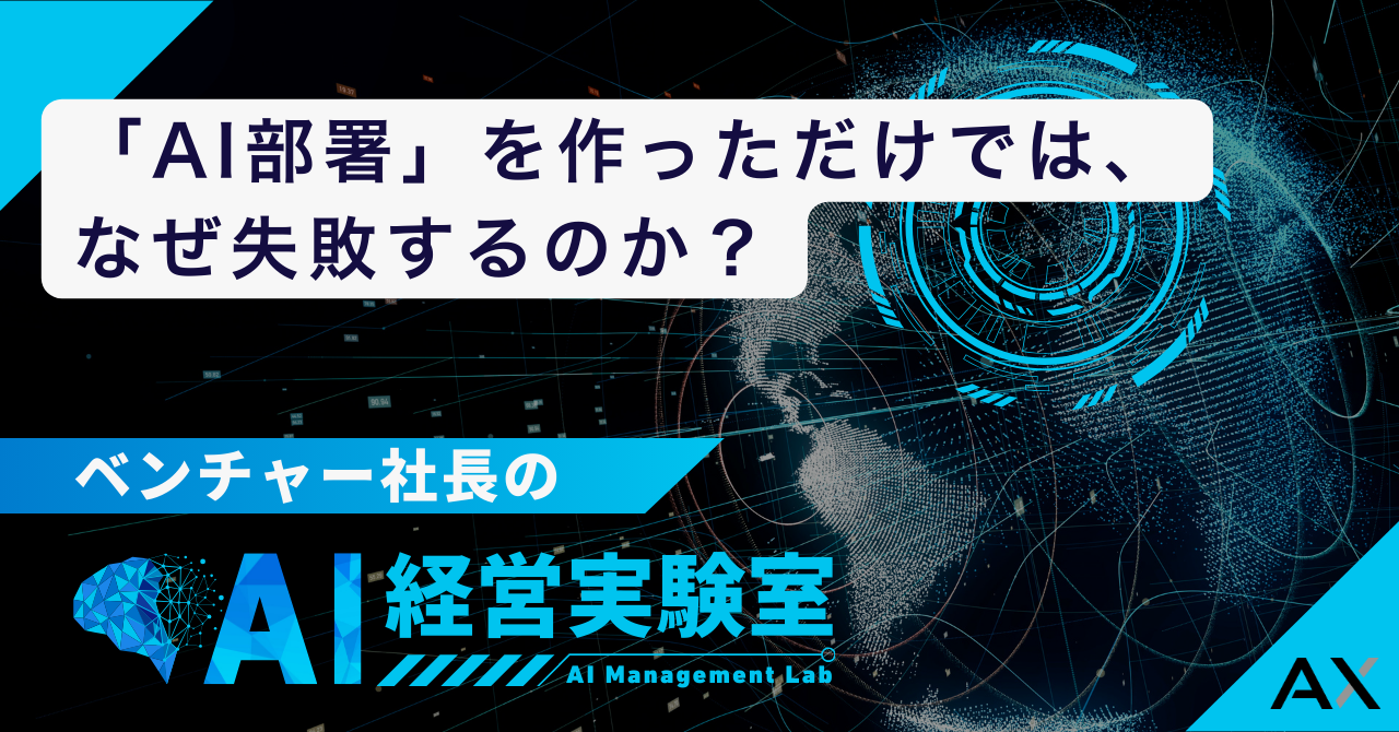 2025.11.30 AI経営実験室 【経営実験室】「AI部署」を作っただけでは、なぜ失敗するのか? AIで26名分の仕事を1人で動かすまでに至った代表・石綿文太が、AI経営のリアルを発信するnoteマガジン『経営実験室』。 今回は「AI部署を作っても成果が出ない理由と、組織にAI文化を根づかせる方法」について書いています。 詳しくはこちら お知らせ一覧へ